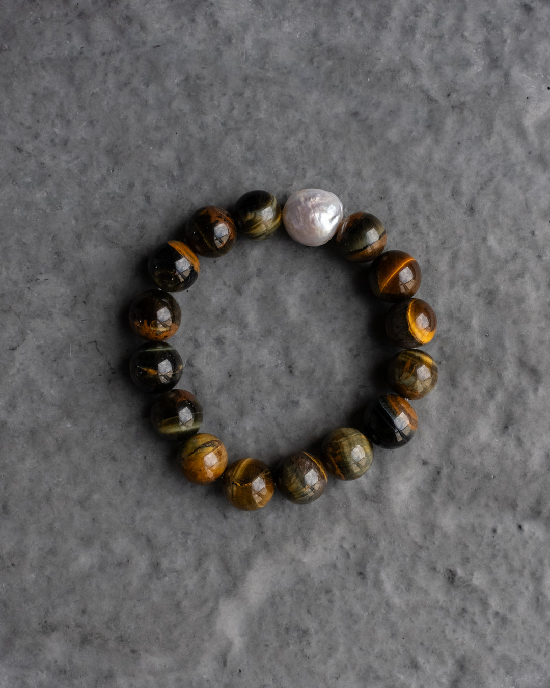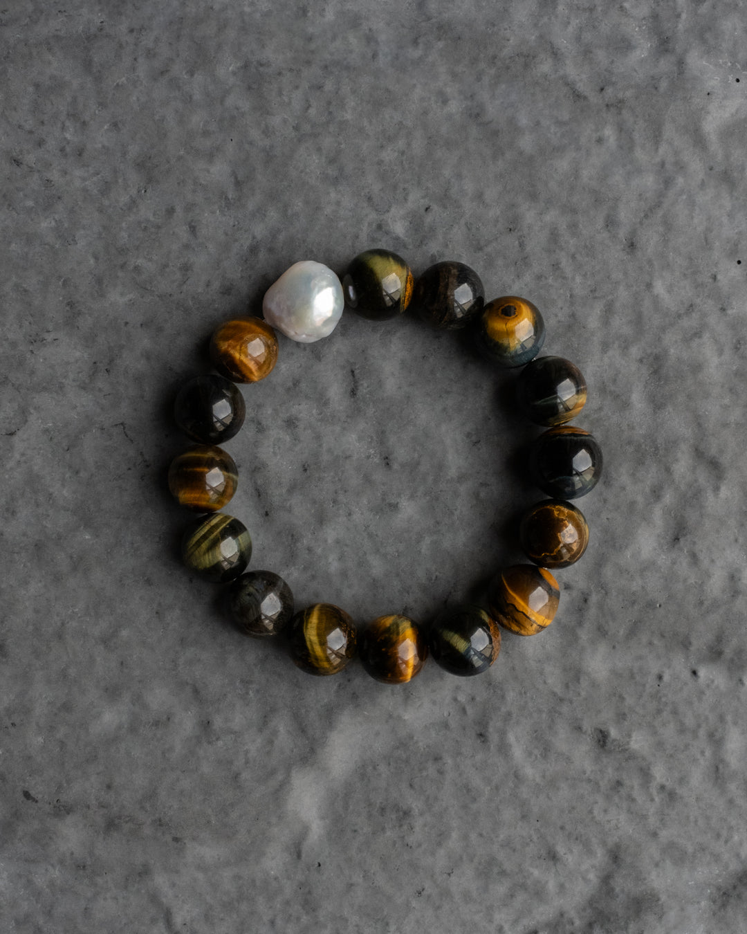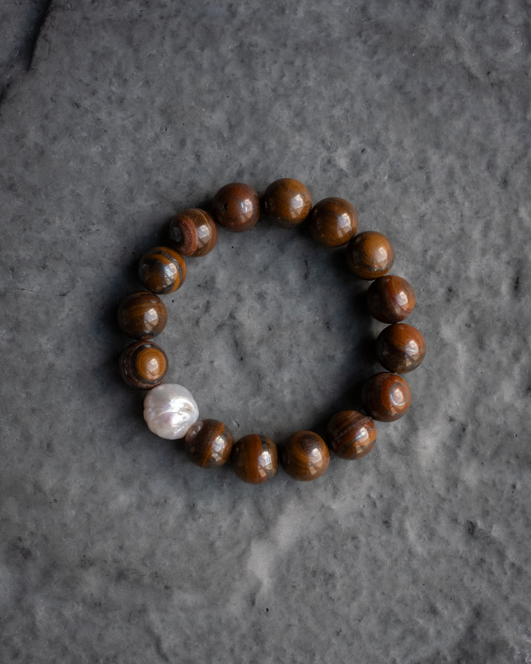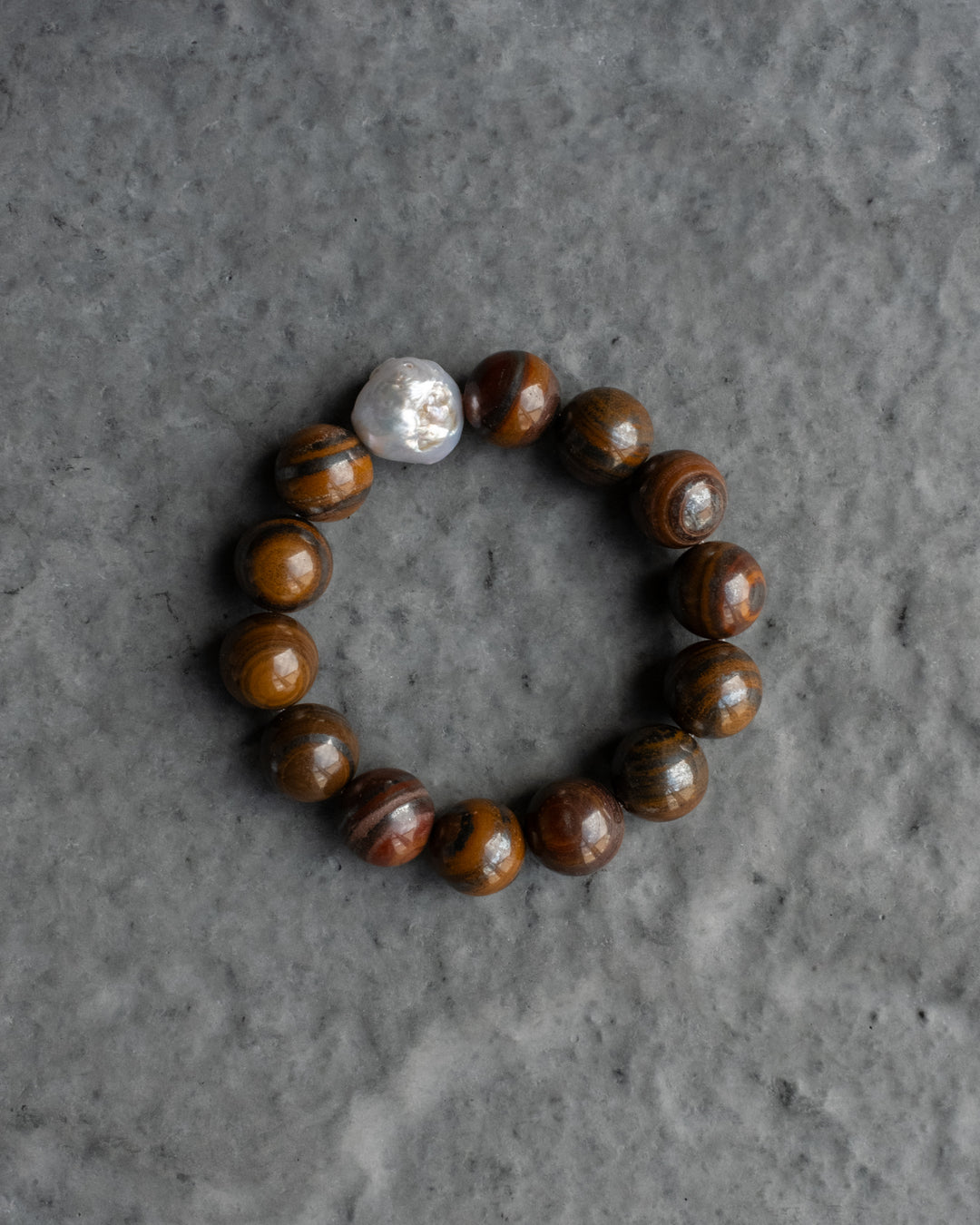 Tiger Iron & Vintage Pearl Round Bead Bracelet 12mm