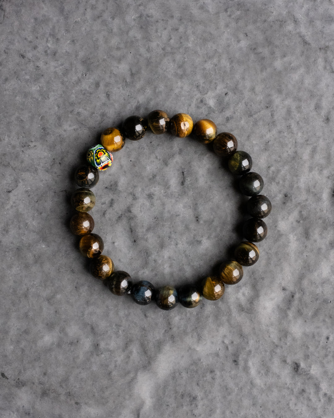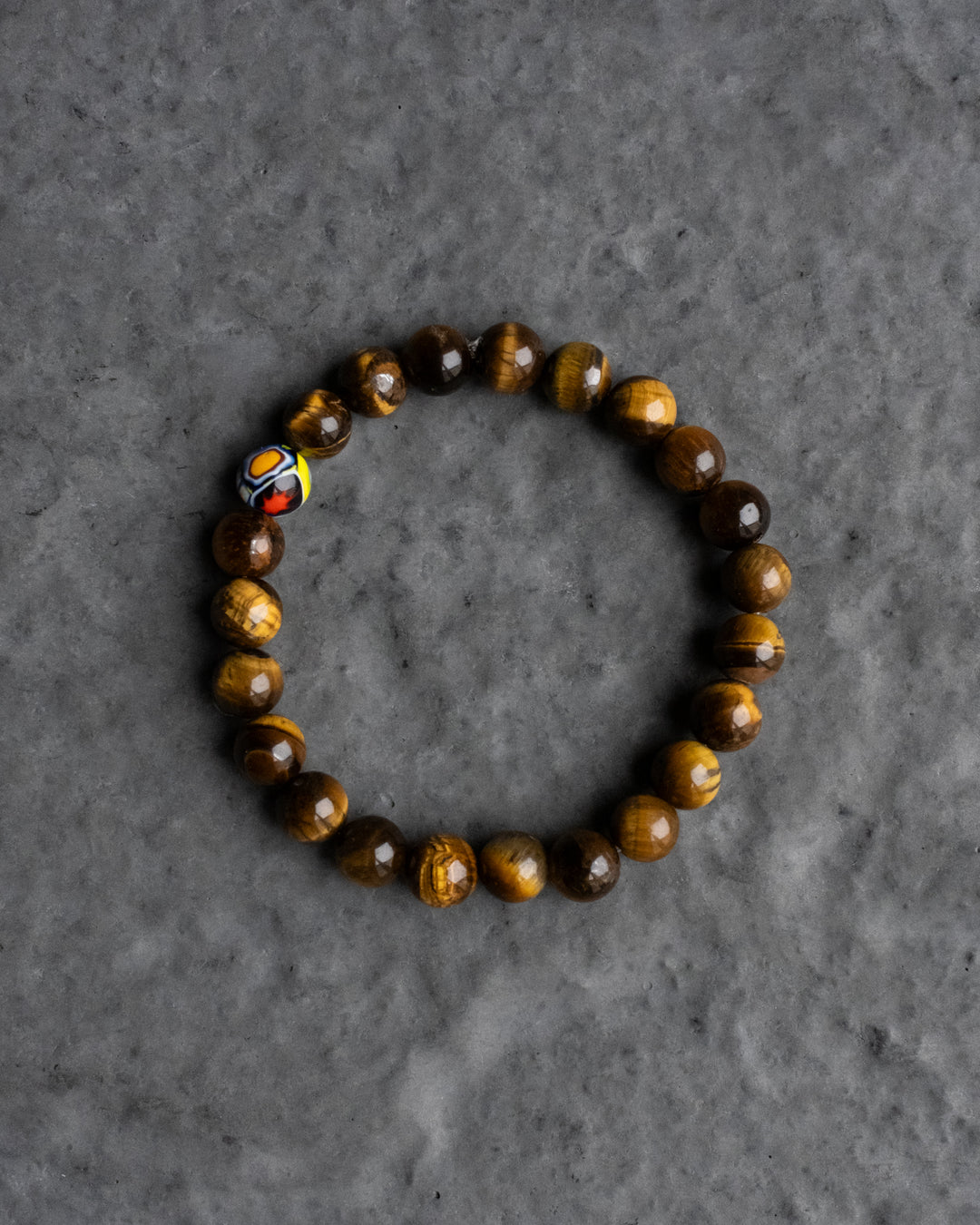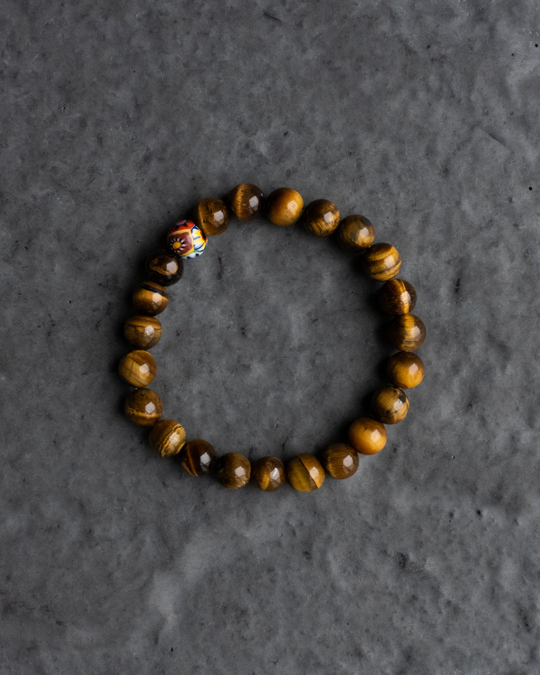 Tiger's Eye & Vintage Millefiori Round Bead Bracelet 8mm