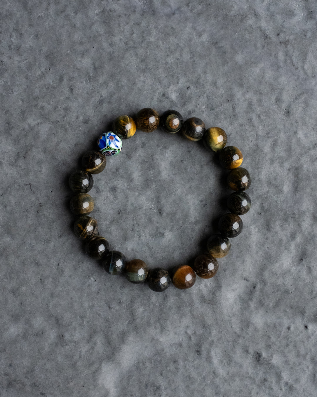 Blue Tiger's Eye & Vintage Millefiori Round Bead Bracelet 8mm
