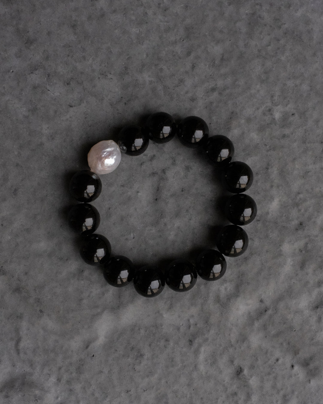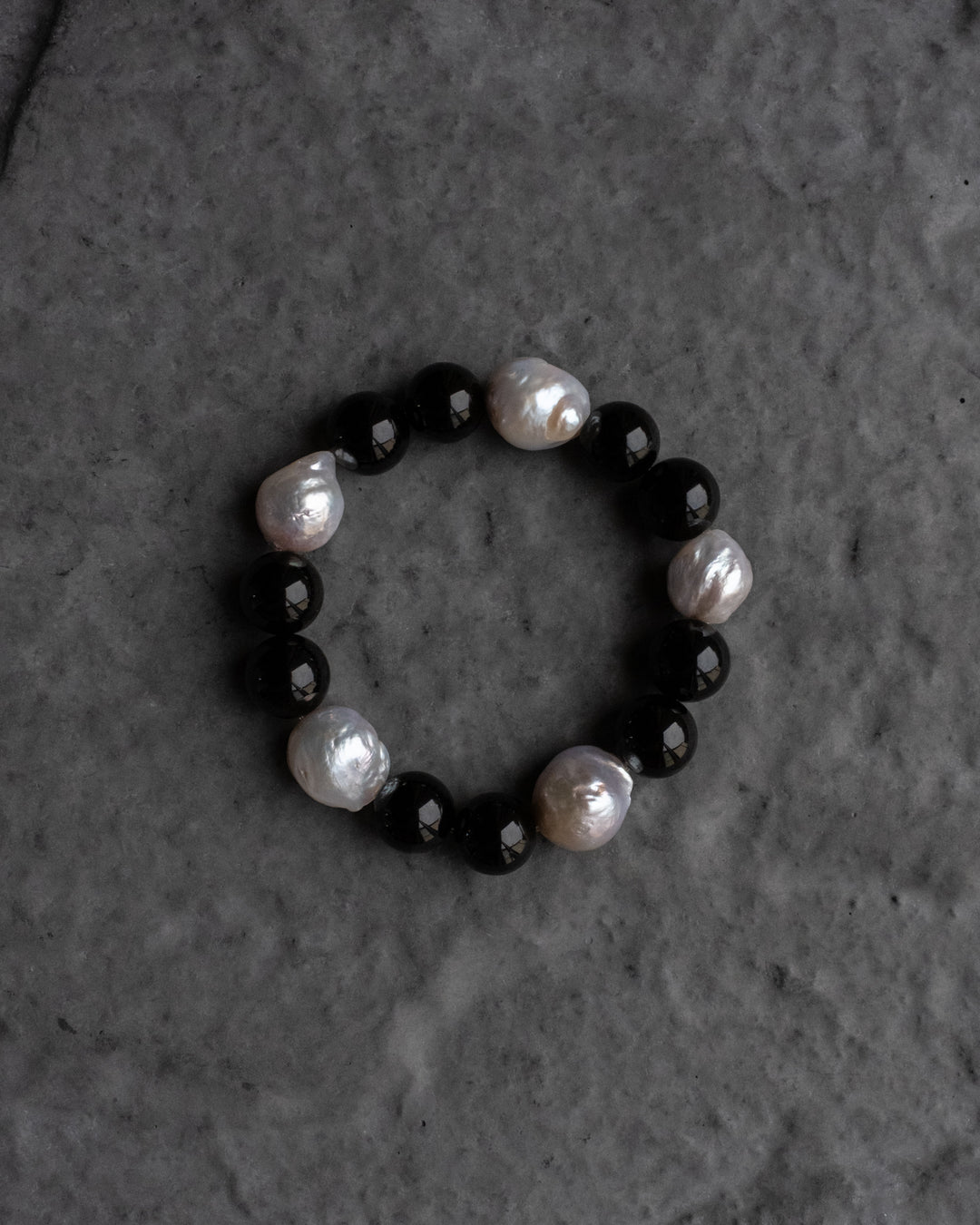 Black Onyx & Vintage Pearl Round Bead Bracelet 12mm