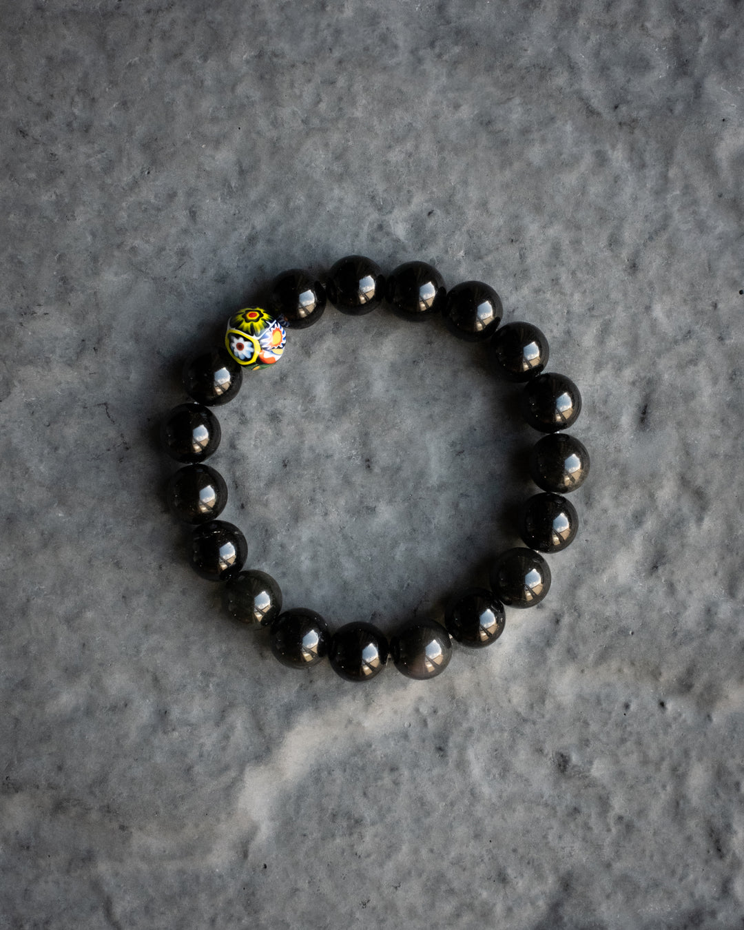 Rainbow Obsidian & Vintage Millefiori Round Bead Bracelet 10mm