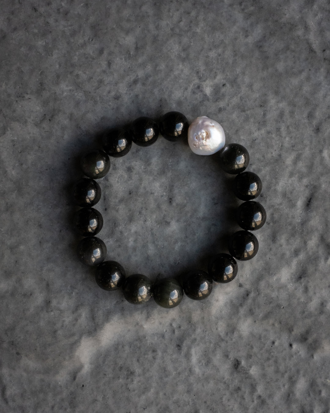 Rainbow Obsidian & Vintage Pearl Round Bead Bracelet 10mm