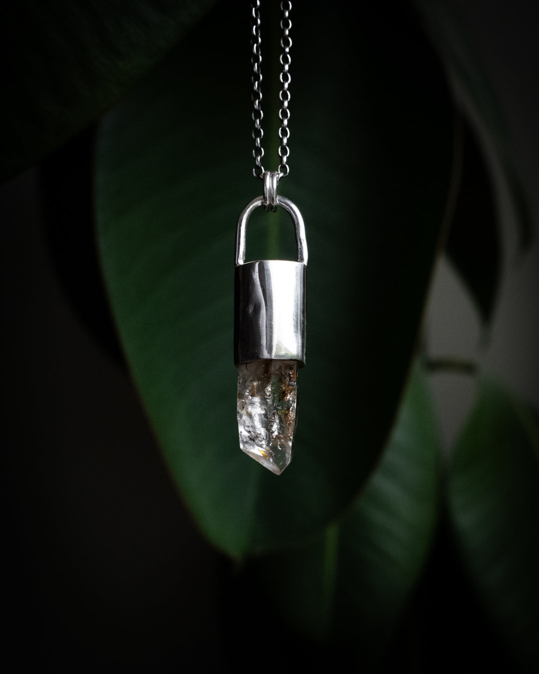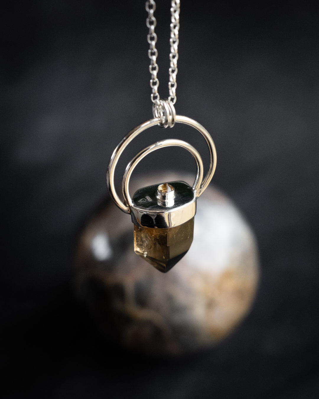 Smoky Citrine & Natural Citrine Moon Bail Sterling Silver Necklace