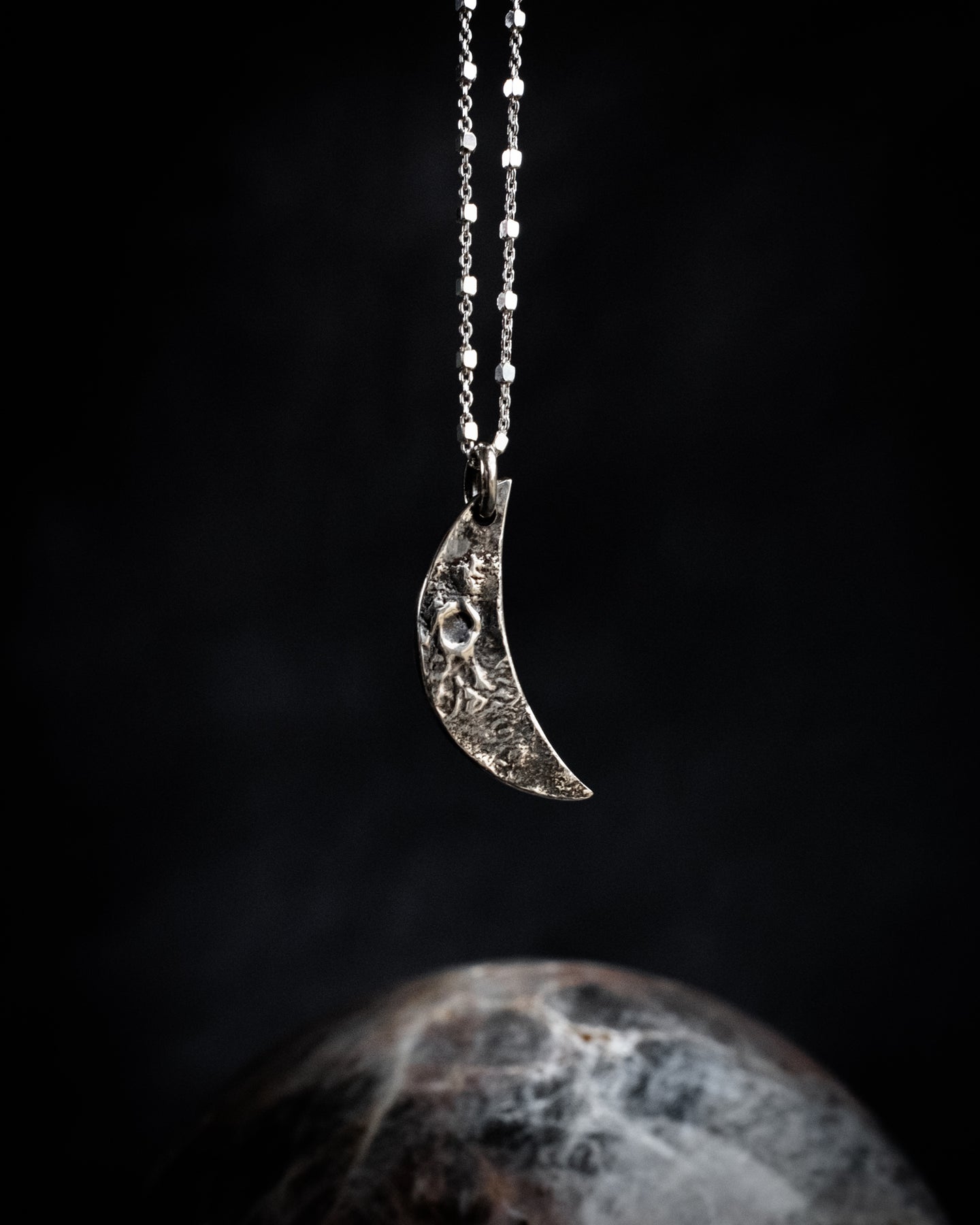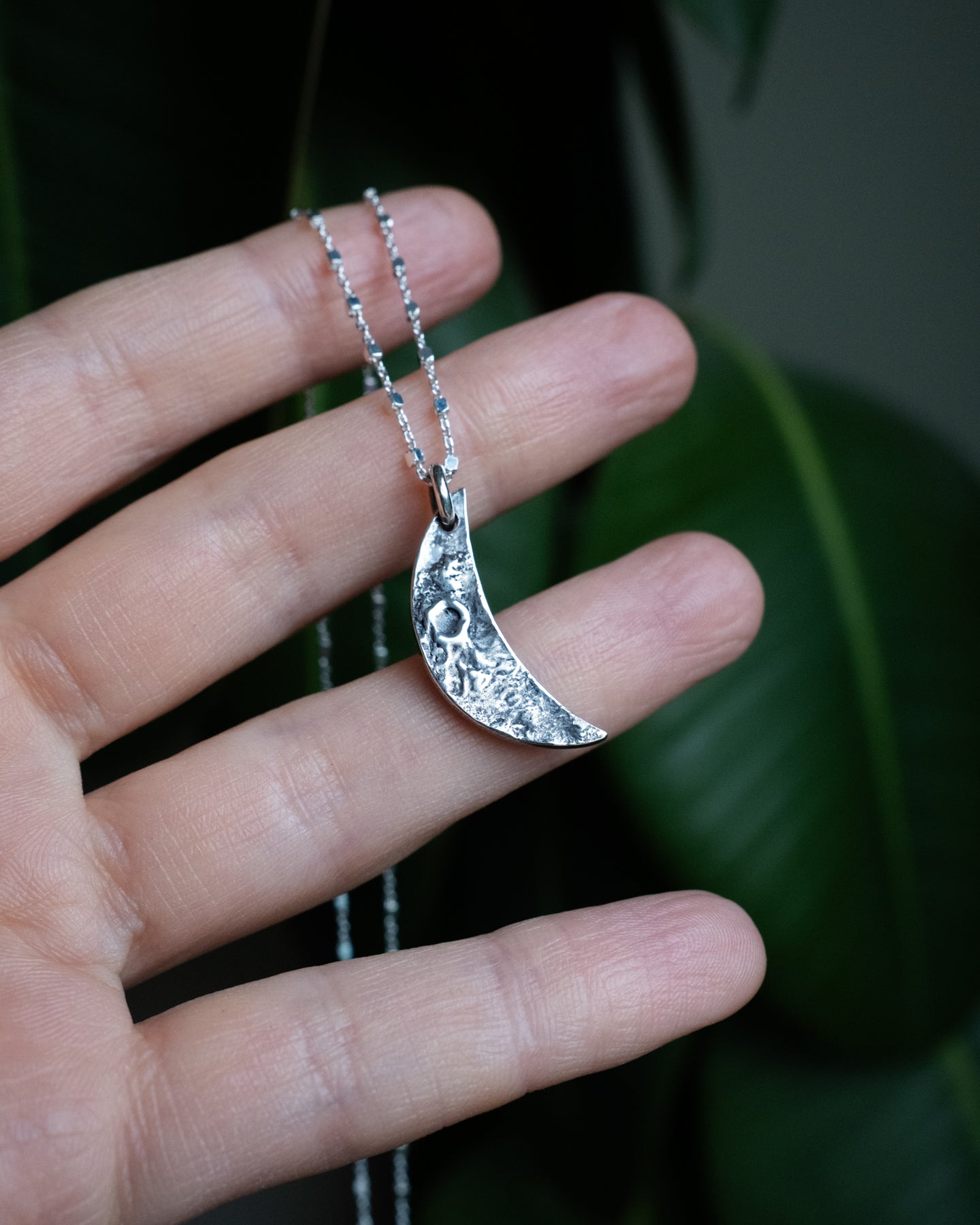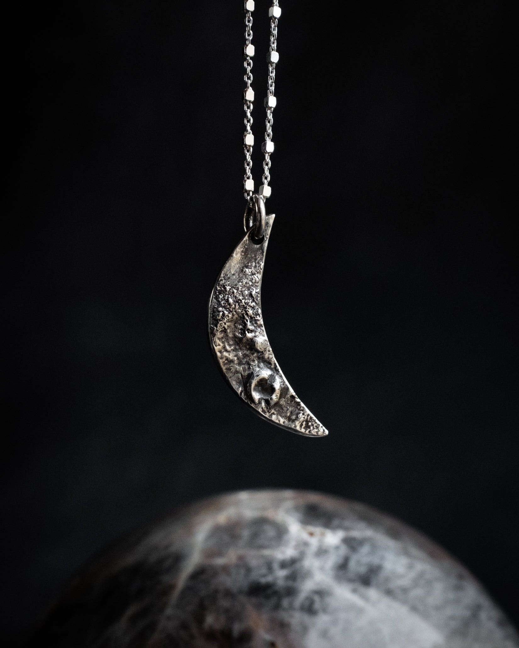Recycled sterling silver moon talisman.